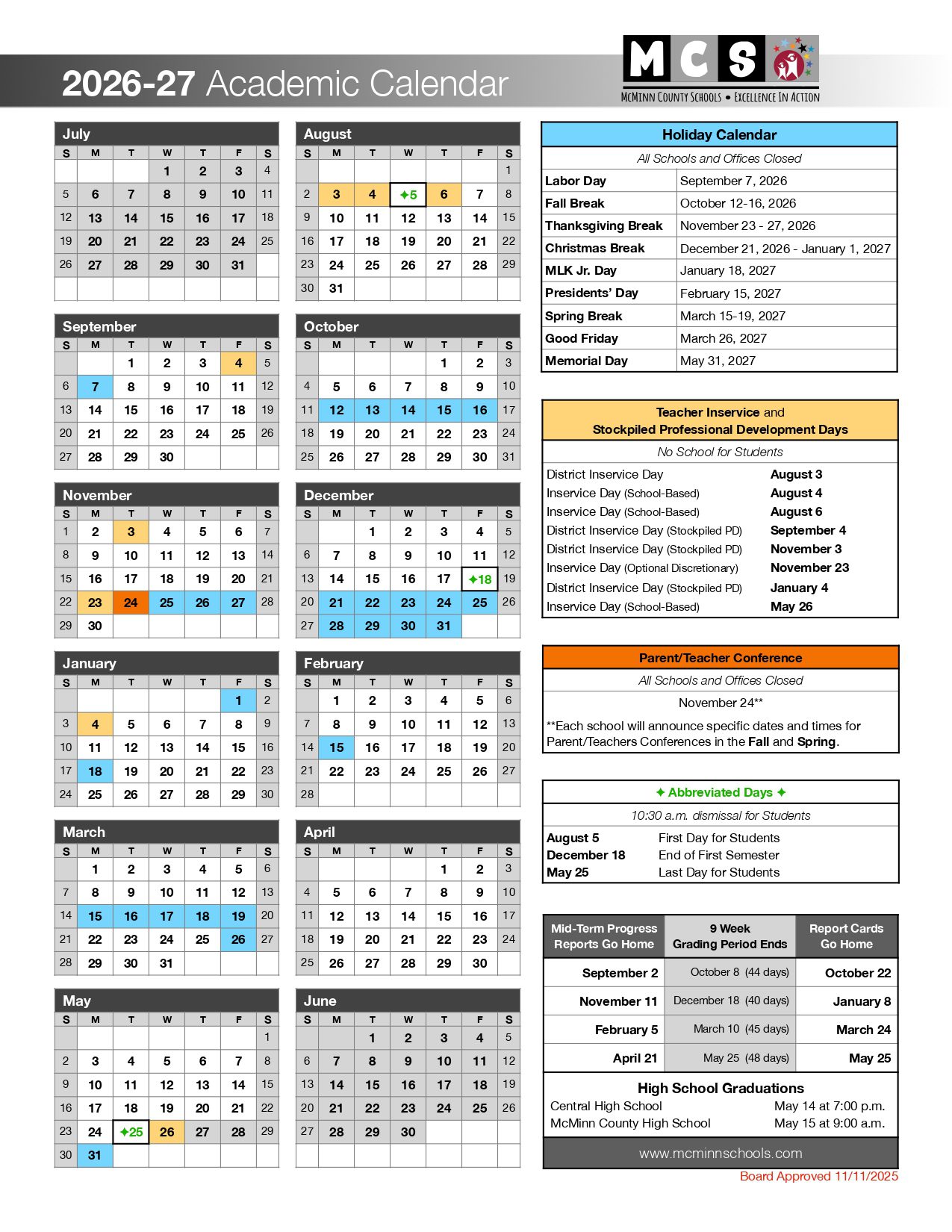 Dates are sourced from the official McMinn County Schools TN Calendar 26-27 [PDF] website. Dates may change at the discretion of the district. Always verify with the official school website for the latest updates.