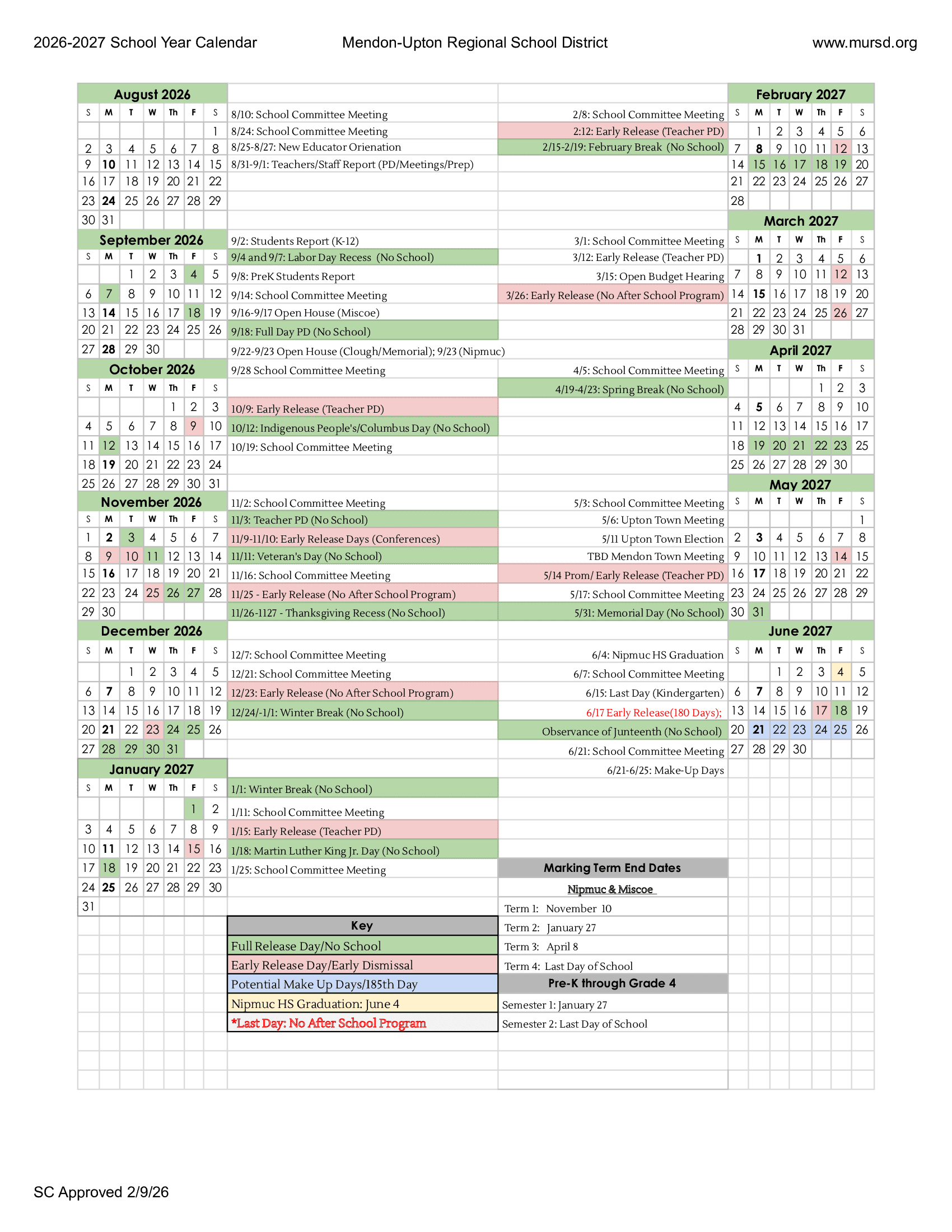 Mendon-Upton Regional School District Calendar 2026-2027 FAQs