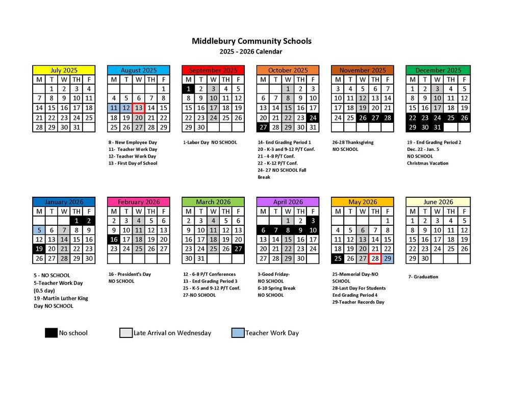 Middlebury Community Schools 2025-2026 Calendar FAQ