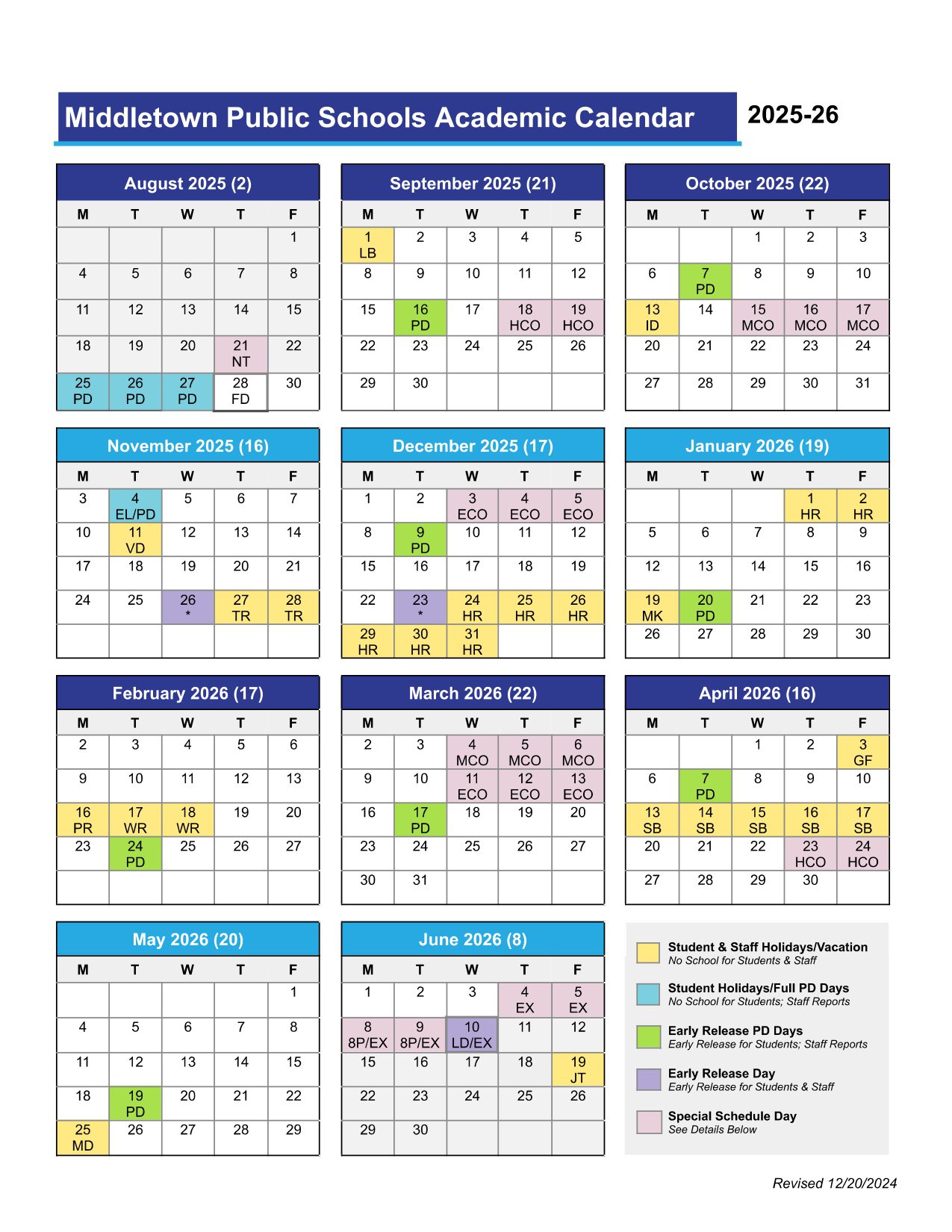 Middletown Public Schools Academic Calendar 2025-2026 - Frequently Asked Questions