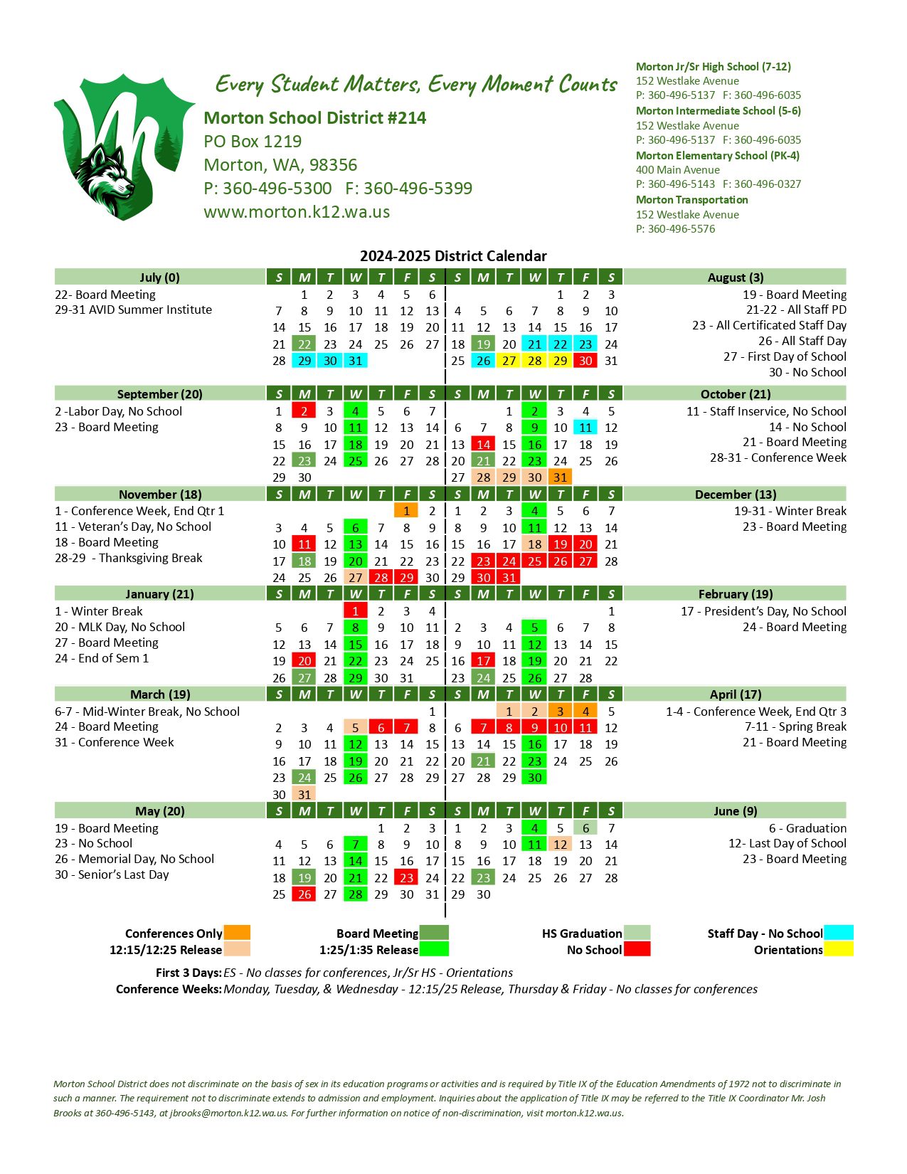Morton School District #214 Calendar (2024-2025)