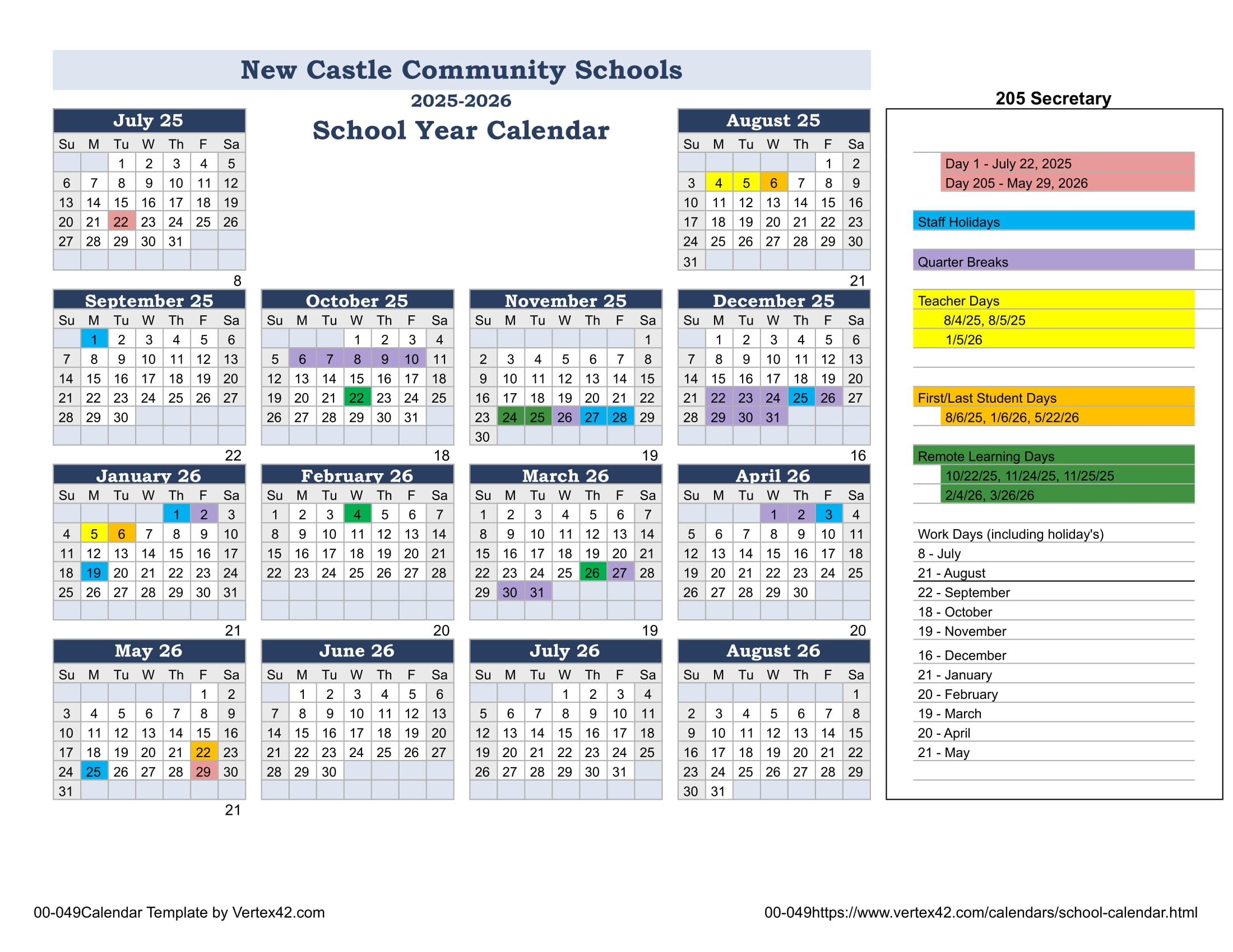 New Castle Community Schools Calendar (2025-2026)