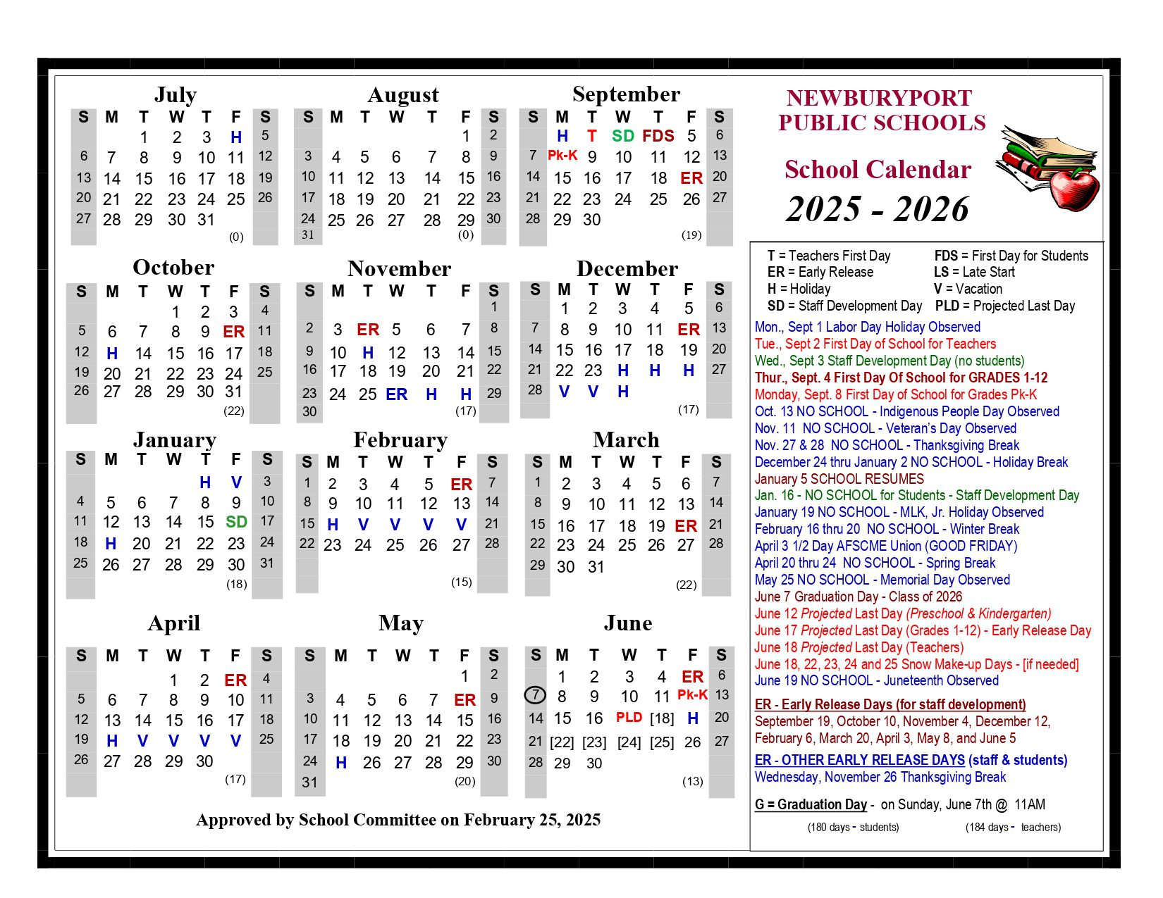 NEWBURYPORT PUBLIC SCHOOLS Calendar (2025-2026)
