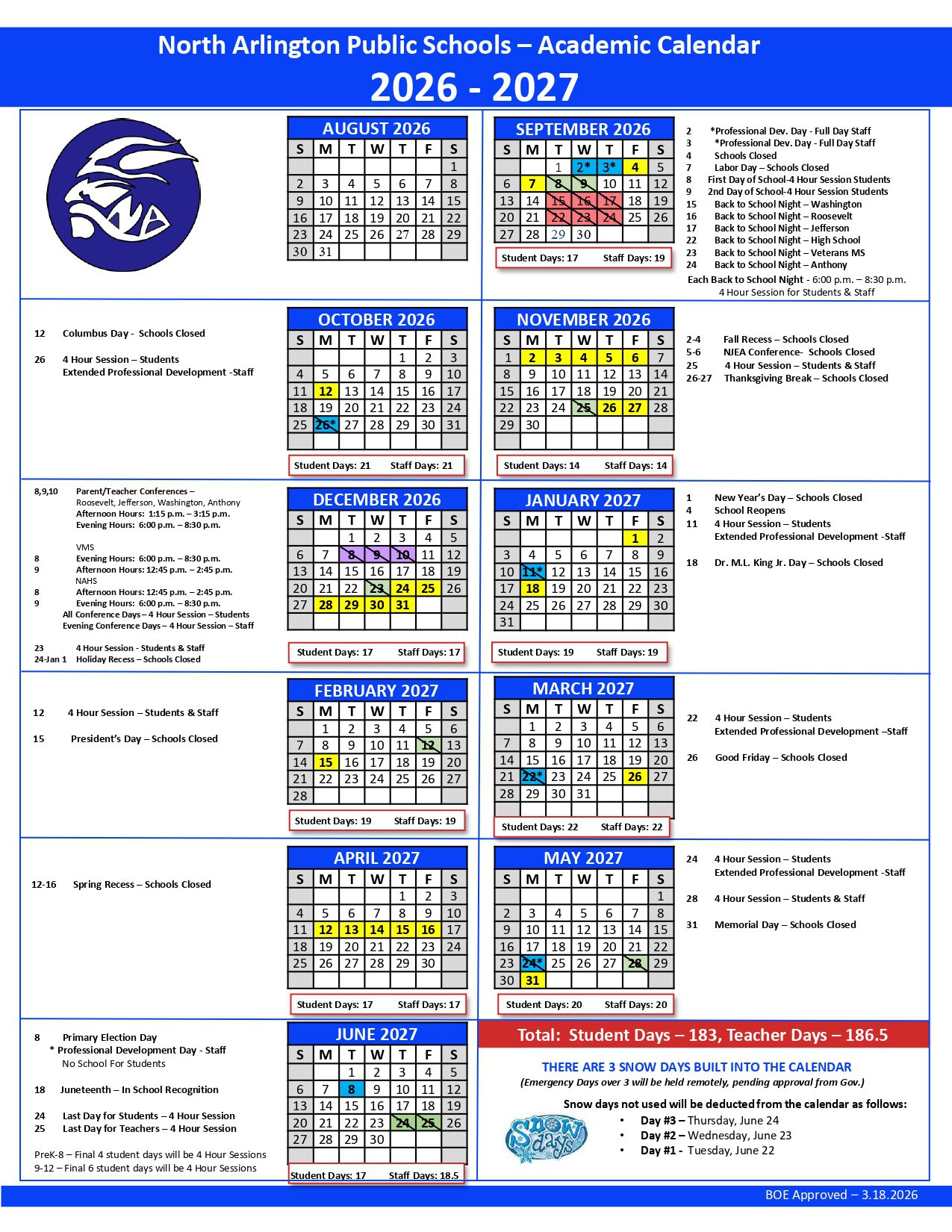 North Arlington Public Schools    NJ Calendar  26-27 Updates