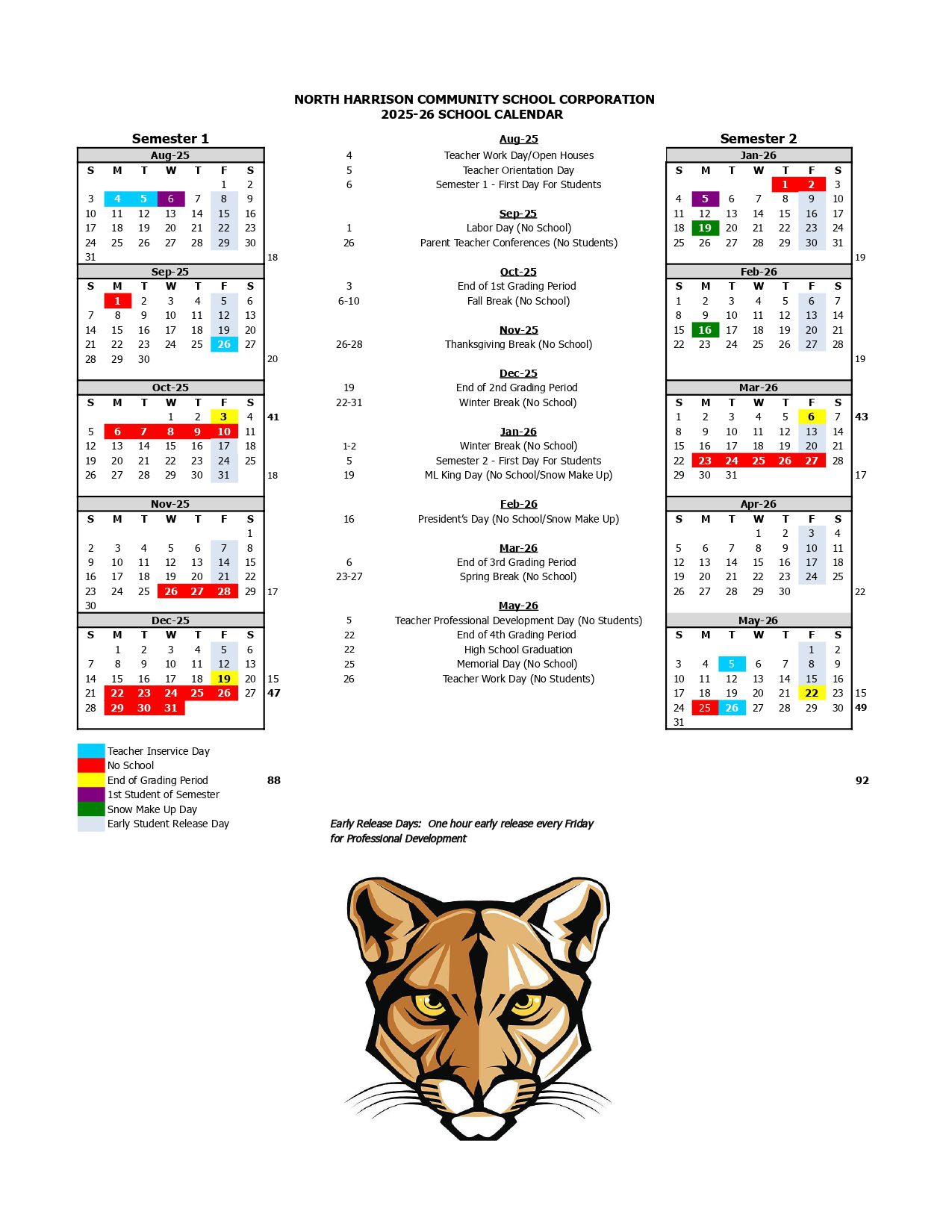 NORTH HARRISON COMMUNITY SCHOOL CORPORATION Calendar (2025-2026)