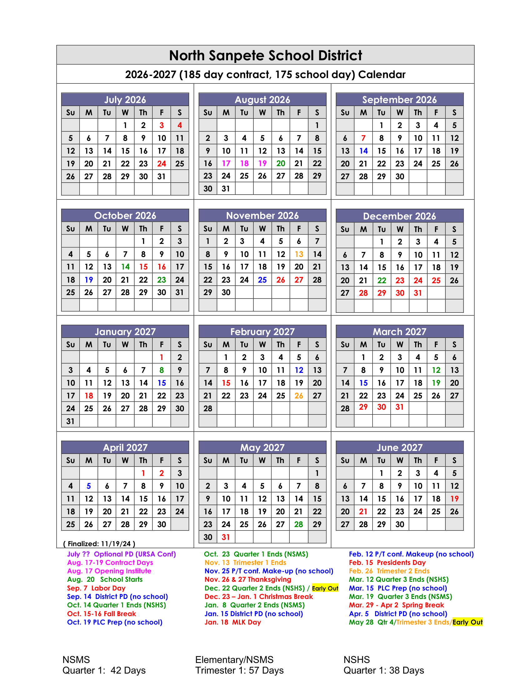 Dates are sourced from the official North Sanpete School District 26-27 Calendar Updated [PDF] website. Dates may change at the discretion of the district. Always verify with the official school website for the latest updates.