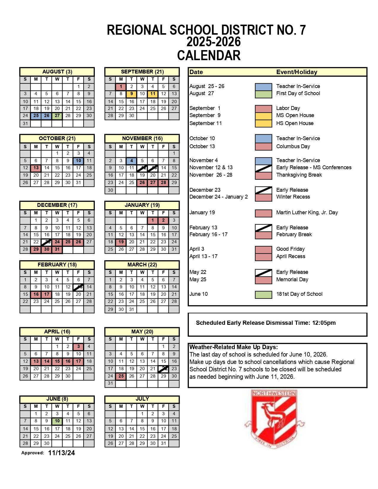 REGIONAL SCHOOL DISTRICT NO. 7 Calendar (2025-2026)