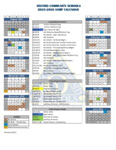 OXFORD COMMUNITY SCHOOLS Calendar (2025-2026)