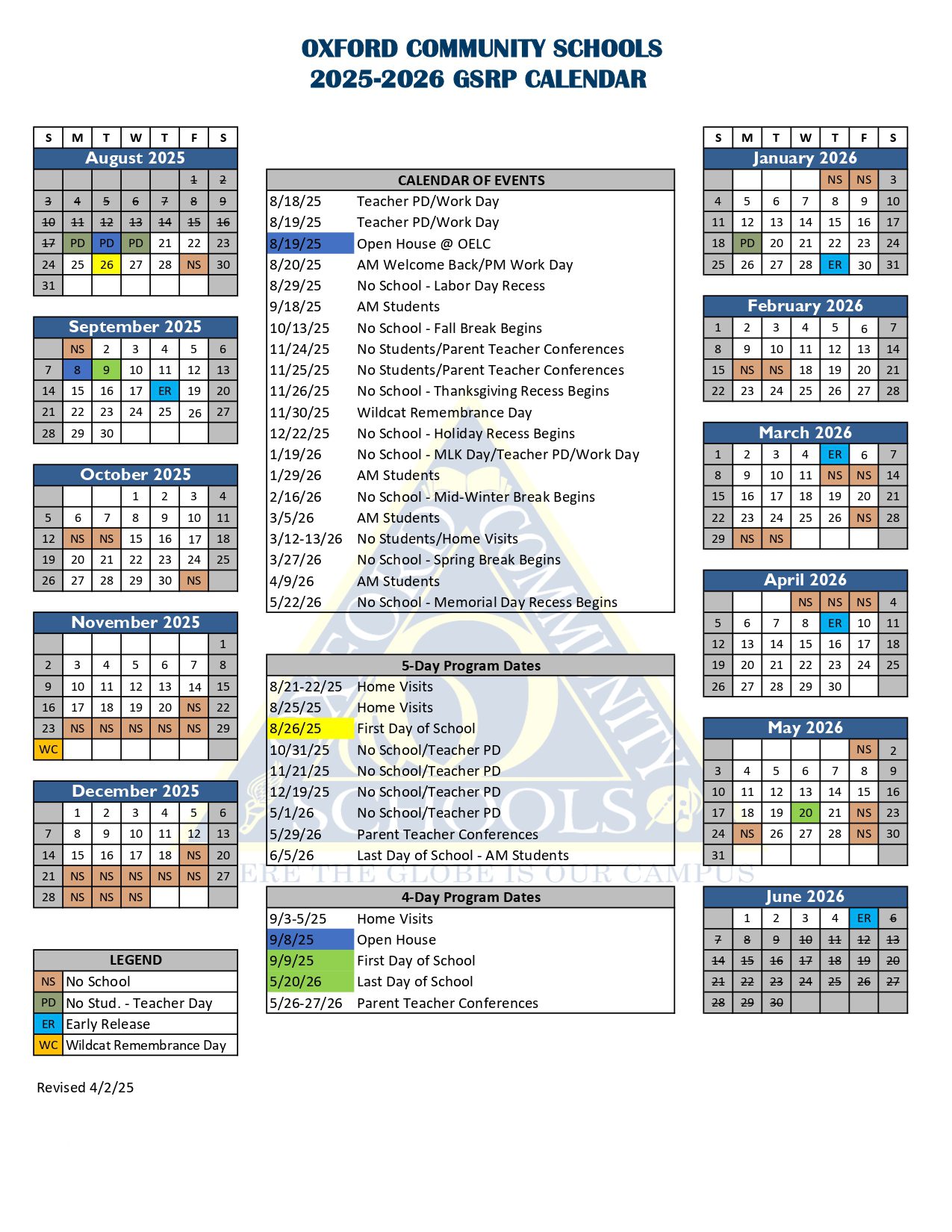 Oxford Community Schools mi Calendar 25-26 Revised [pdf]