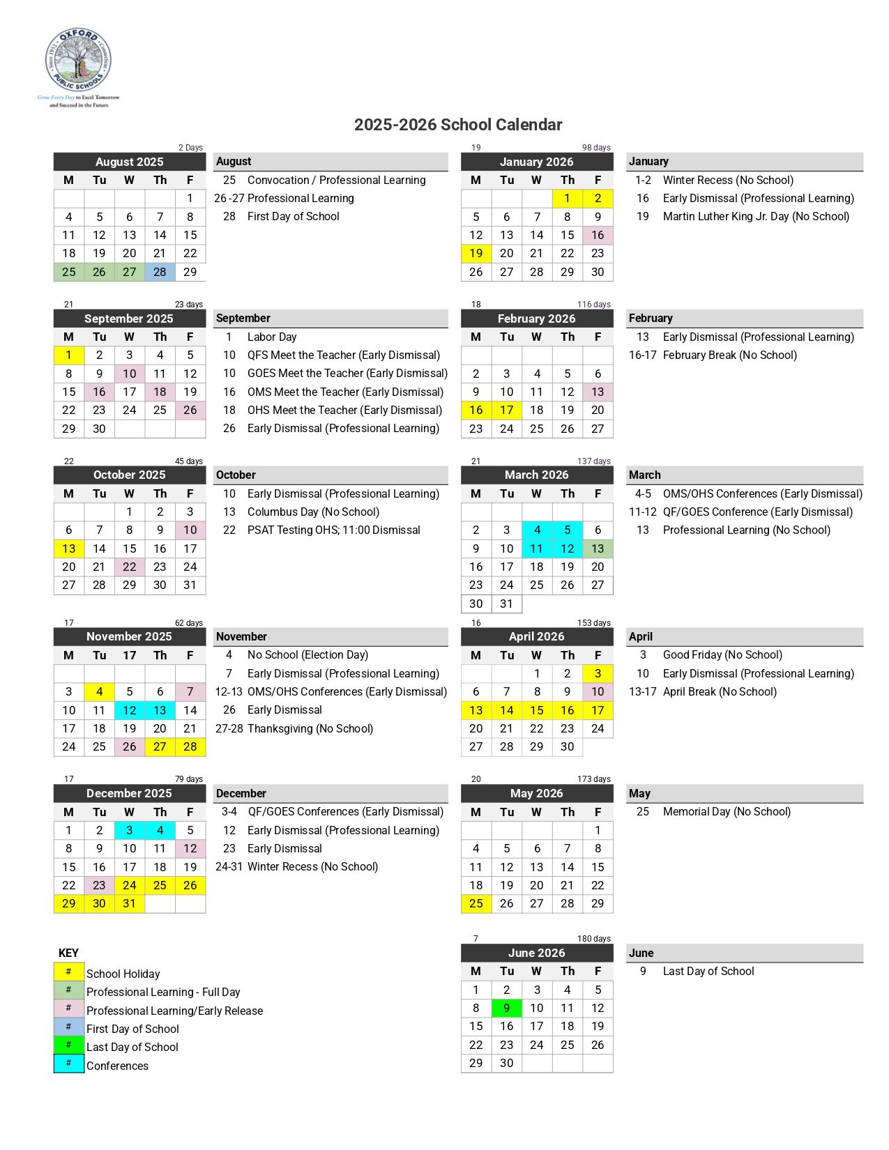 Oxford Public Schools 2025-2026 Calendar FAQ