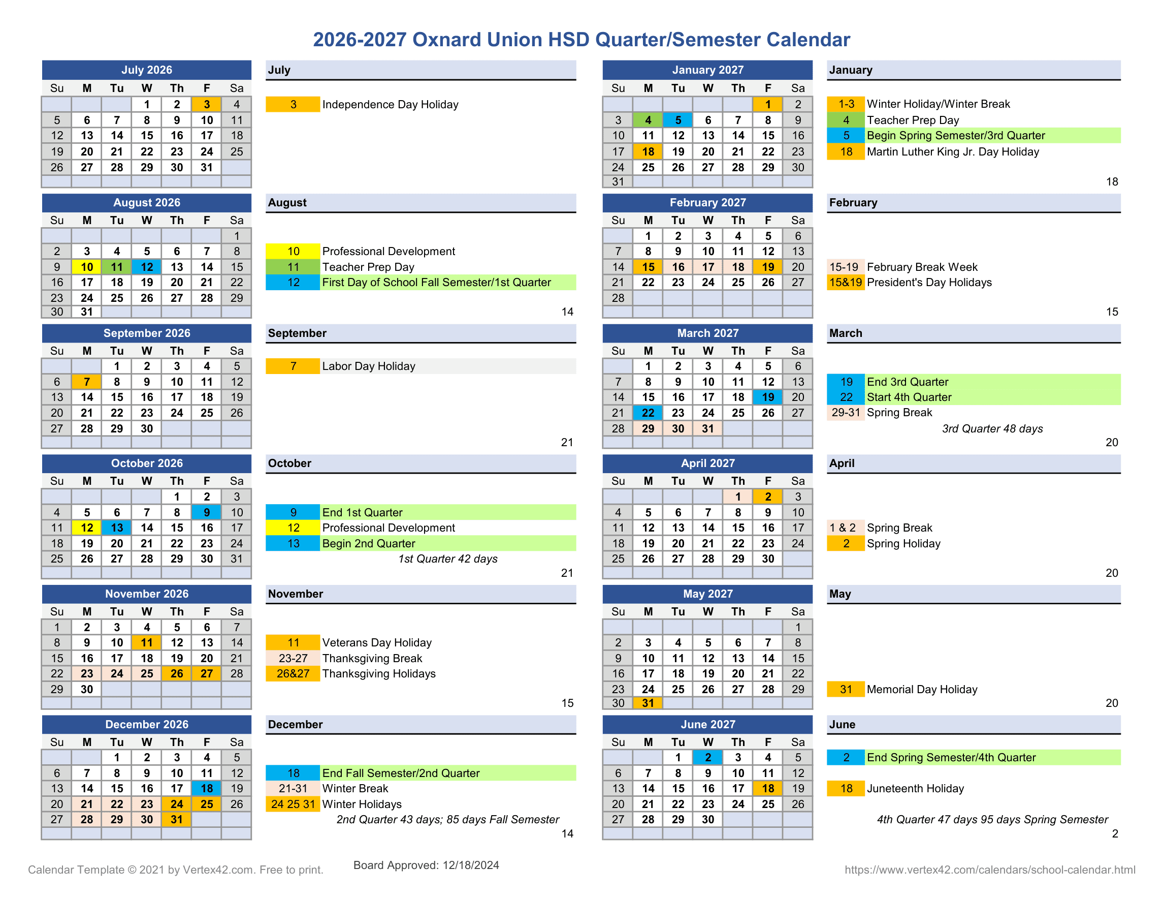 Dates are sourced from the official Oxnard Union HSD 26-27 Calendar [PDF] website. Dates may change at the discretion of the district. Always verify with the official school website for the latest updates.