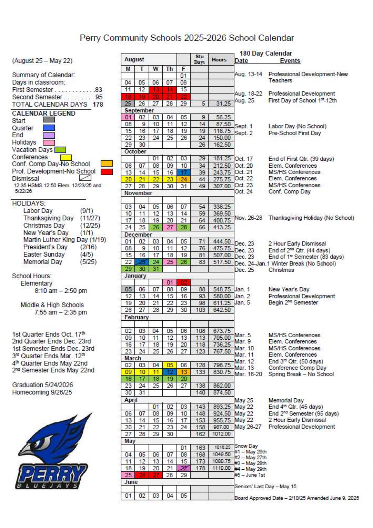 Perry Community School District Calendar 25-26 Revised [pdf]