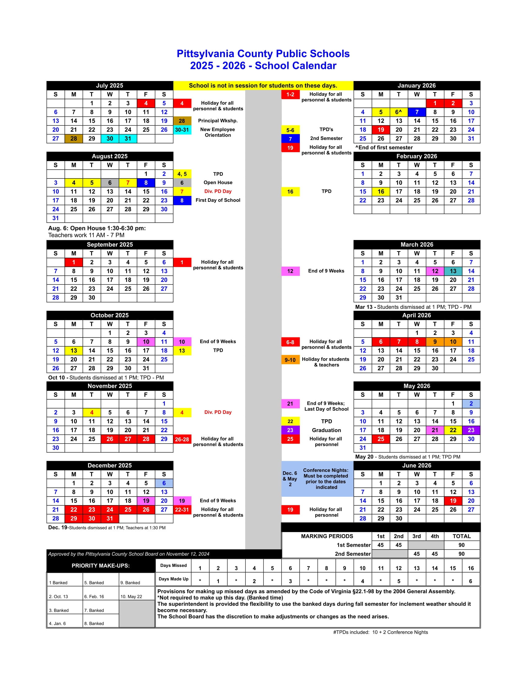 Pittsylvania County Public Schools Calendar (2025-2026)