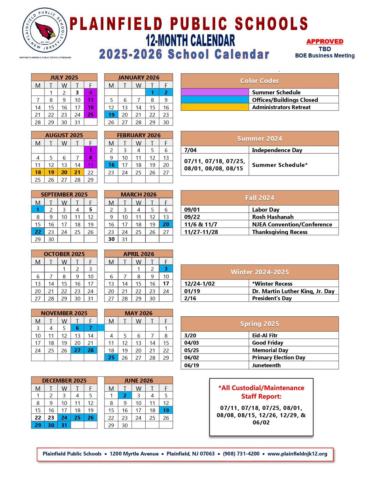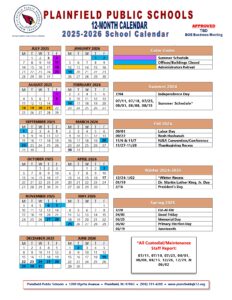 Plainfield Public Schools Calendar (2025-2026)