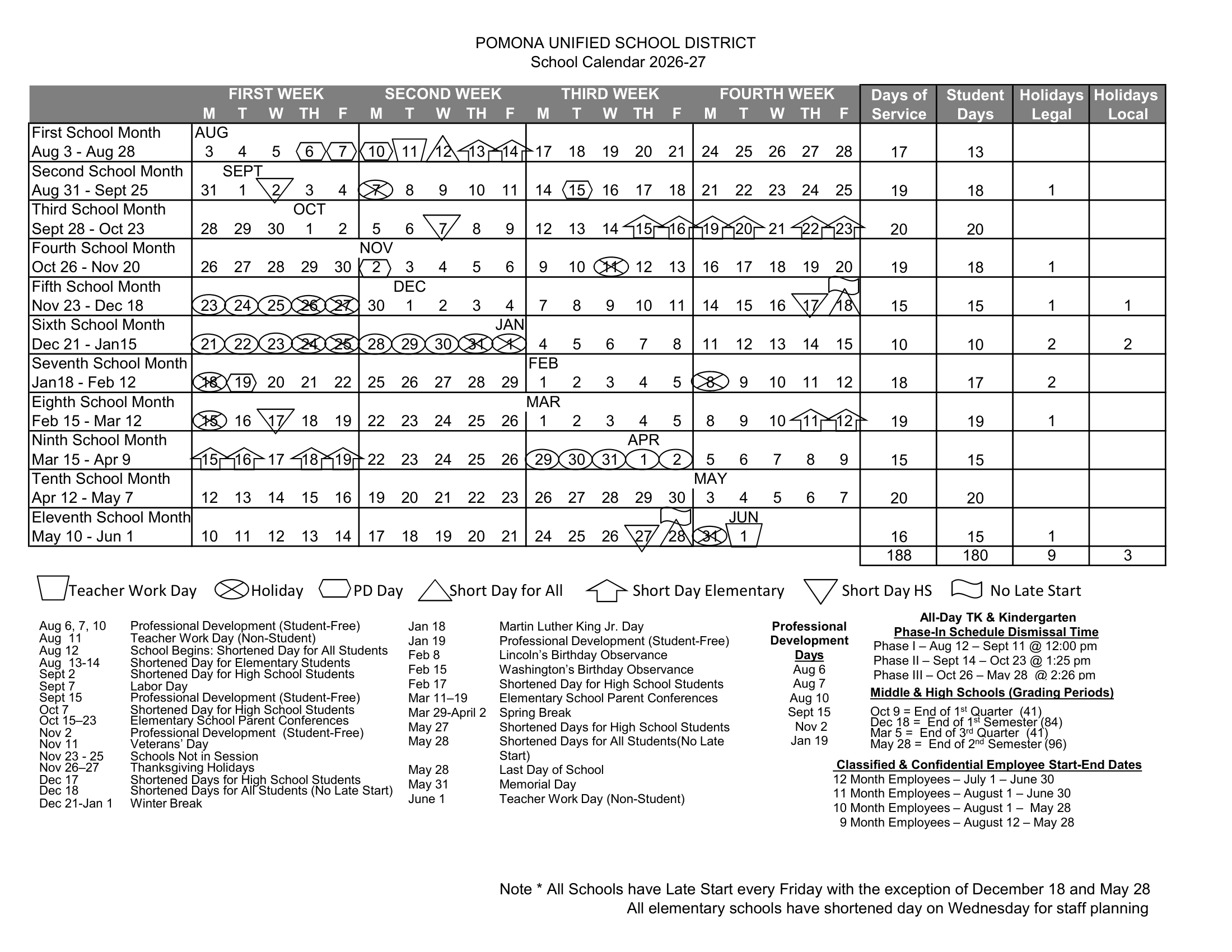 Pomona Unified School District Calendar 2026-2027 FAQs