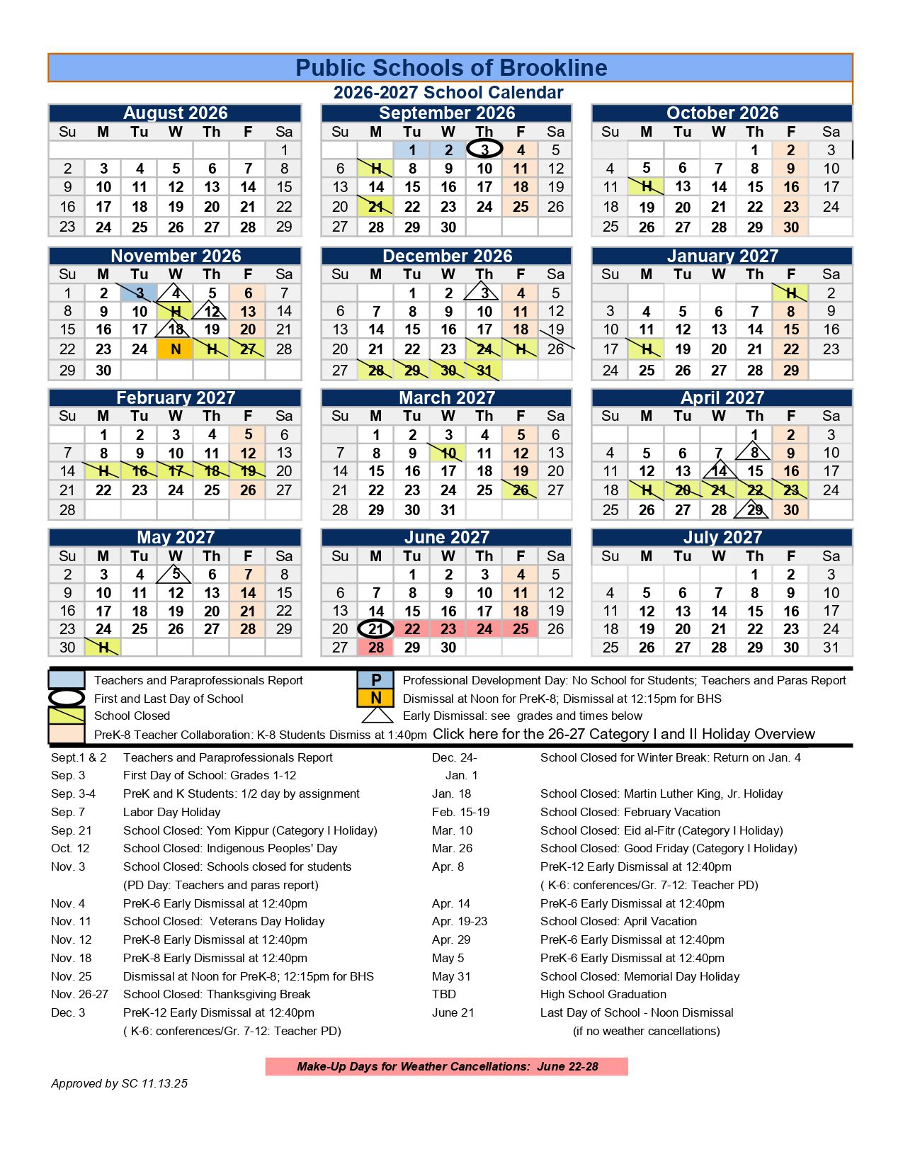 Dates are sourced from the official Public Schools of Brookline PSBMA Calendar 26-27 [PDF] website. Dates may change at the discretion of the district. Always verify with the official school website for the latest updates.