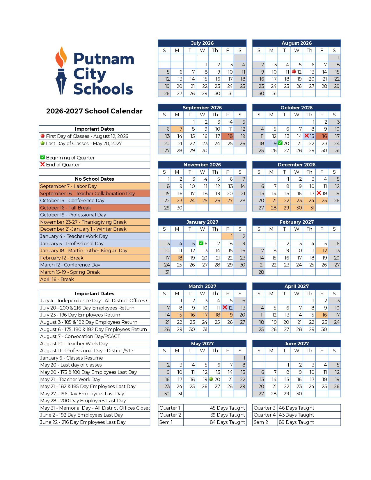 Putnam City Schools Calendar (2026-2027)