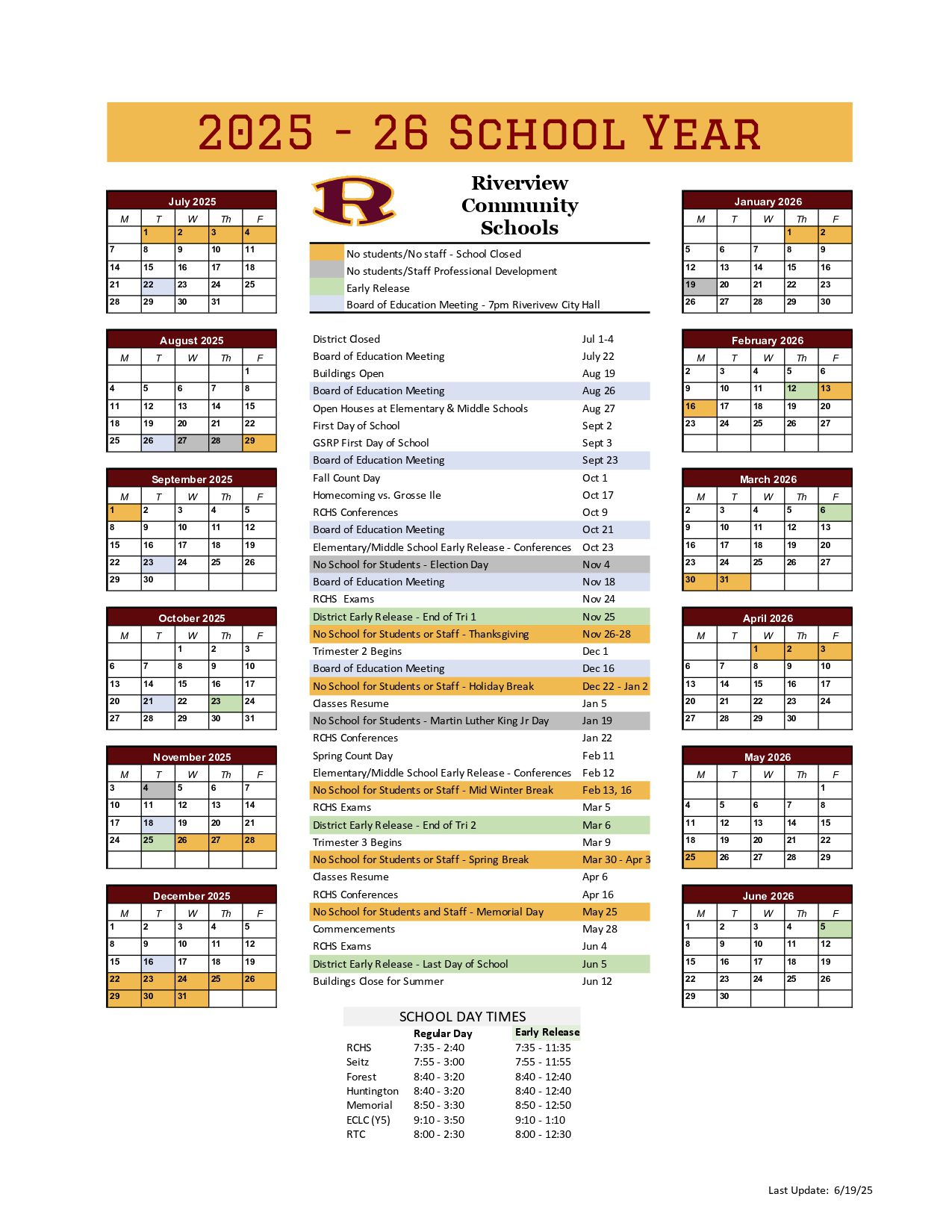 Riverview Community School District MI Calendar 25-26 Revised [pdf]