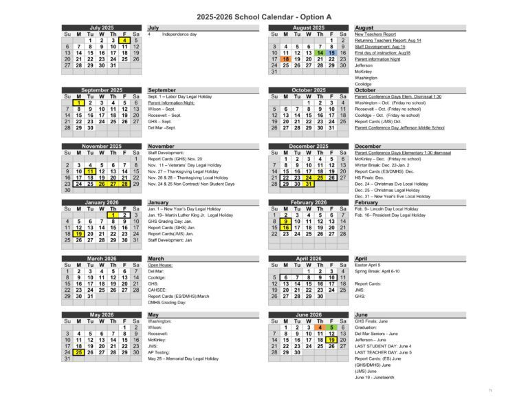 Oct, 2025No School (Fridays for Washington, Roosevelt, and Coolidge)