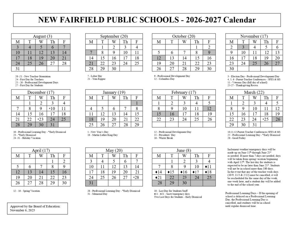 NEW FAIRFIELD PUBLIC SCHOOLS ct Calendar 26-27 Revised PDF