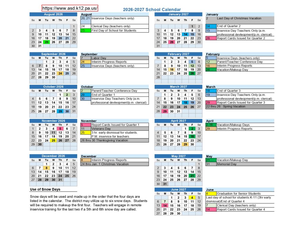 Armstrong School District pa Calendar 26-27 Revised PDF