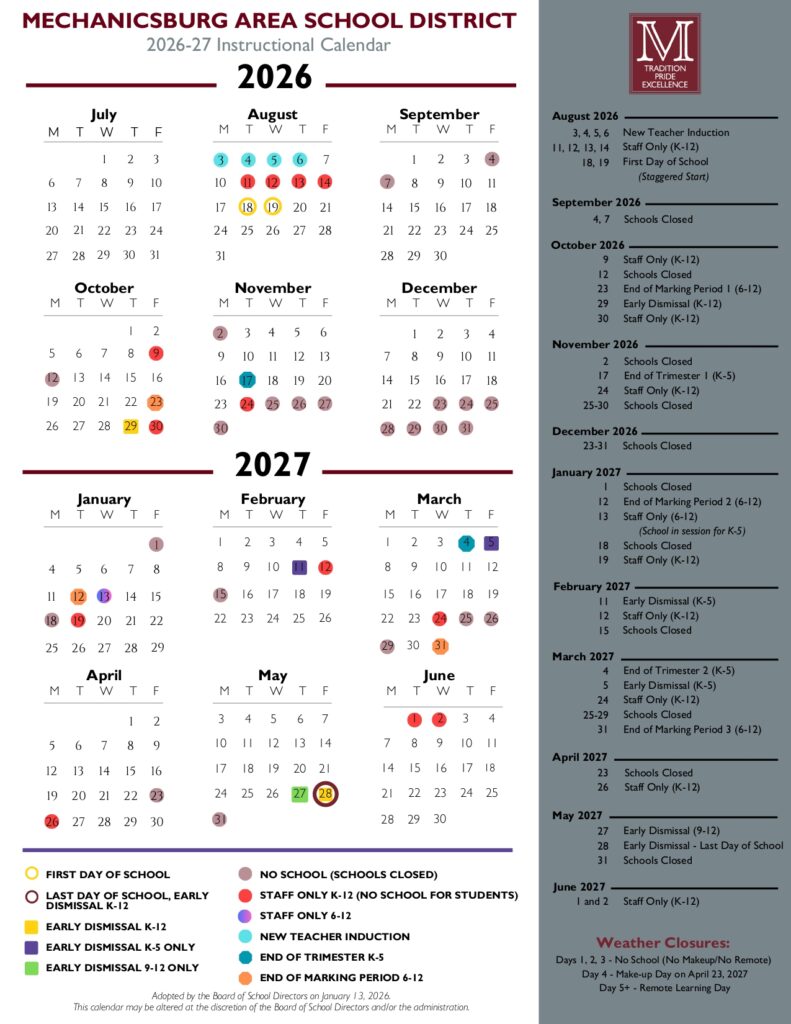 MECHANICSBURG AREA SCHOOL pa Calendar 26-27 Revised PDF