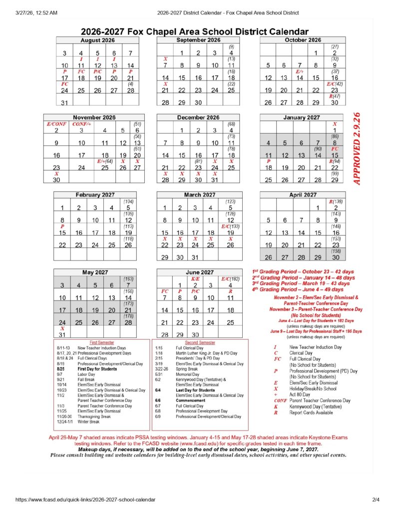 Pennsylvania, School Calendars, StatesBaldwin-Whitehall School District pa Calendar 26-27 Revised PDF
