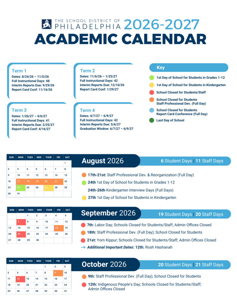Pennsylvania, School Calendars, StatesThe School District of Philadelphia PHILASD 26-27 Calendar [PDF]