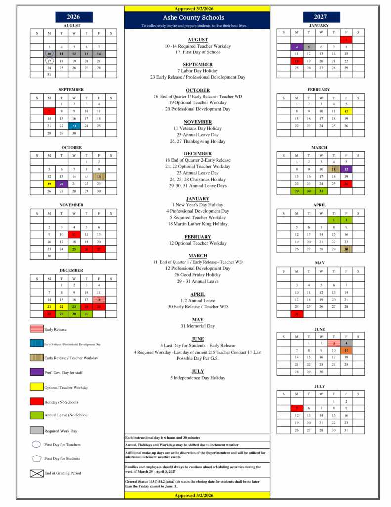 Ashe County Schools 26-27 Calendar [PDF] Updates
