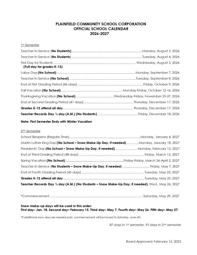 Plainfield Community School Calendar 26-27 [PDF]