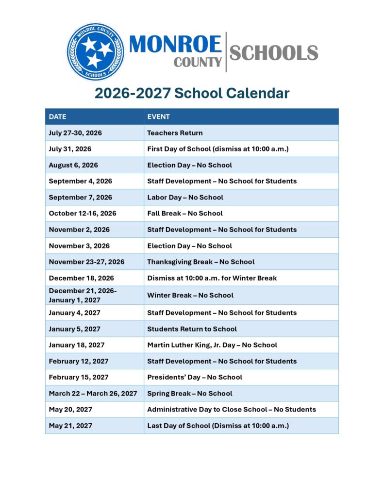 Monroe County Schools TN Calendar 26-27 [PDF]