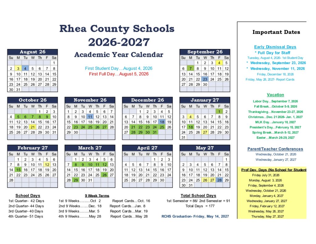 Rhea County Schools TN Calendar 26-27 [PDF]