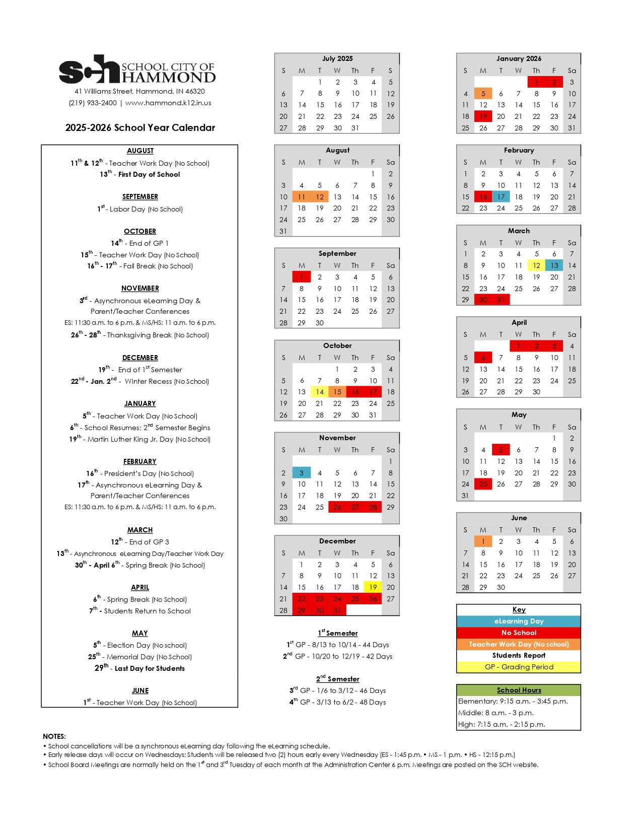 SCHOOL CITY OF HAMMOND Calendar (2025-2026)