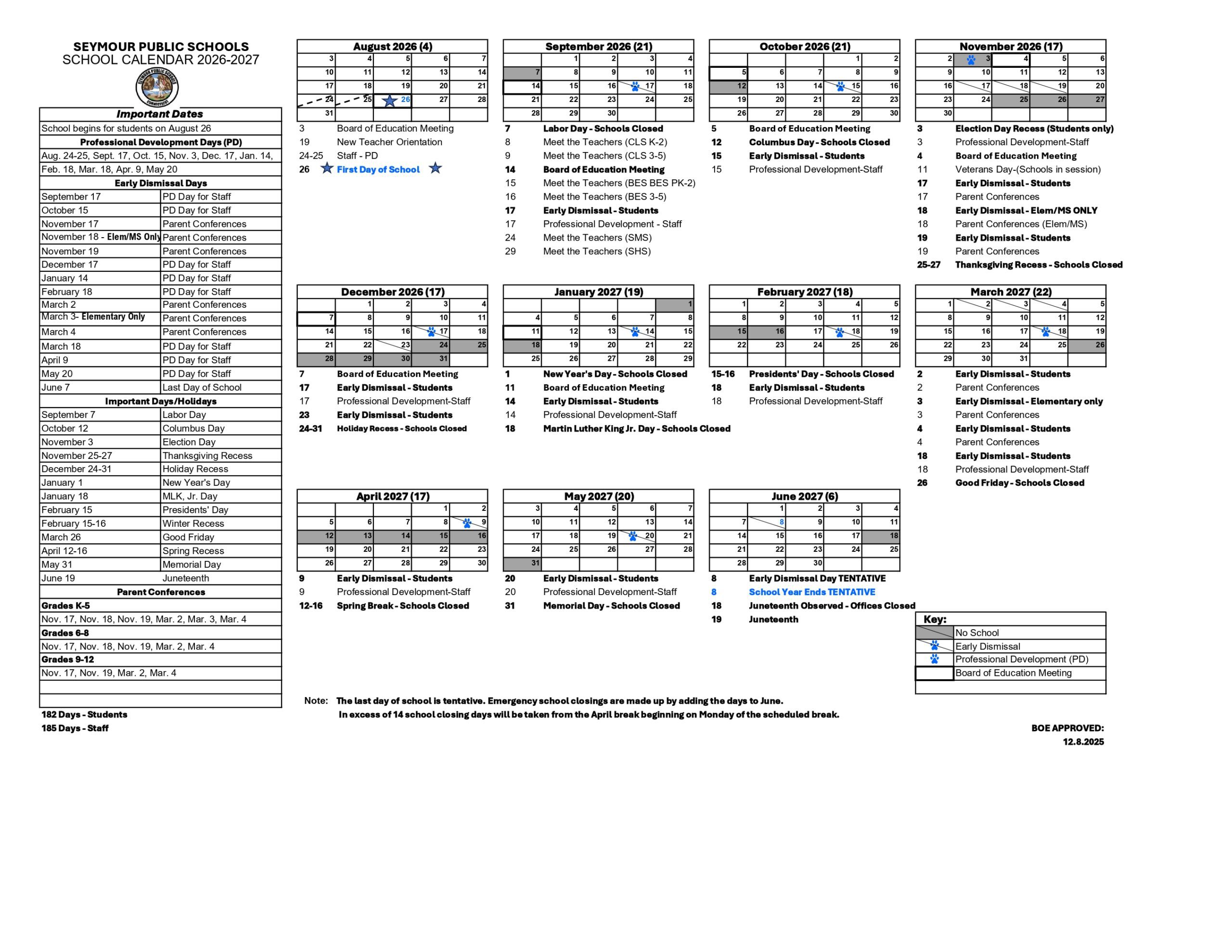 Seymour Public Schools Calendar 2026-2027 FAQ