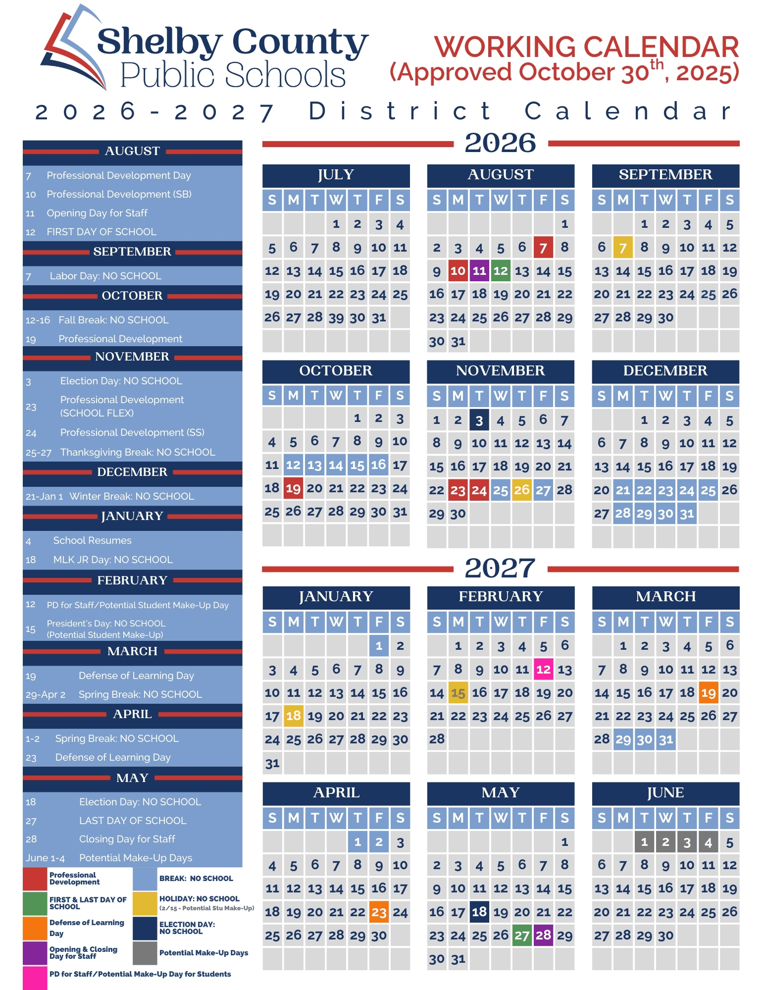 Shelby County Public Schools 2026-2027 Calendar – Important Dates