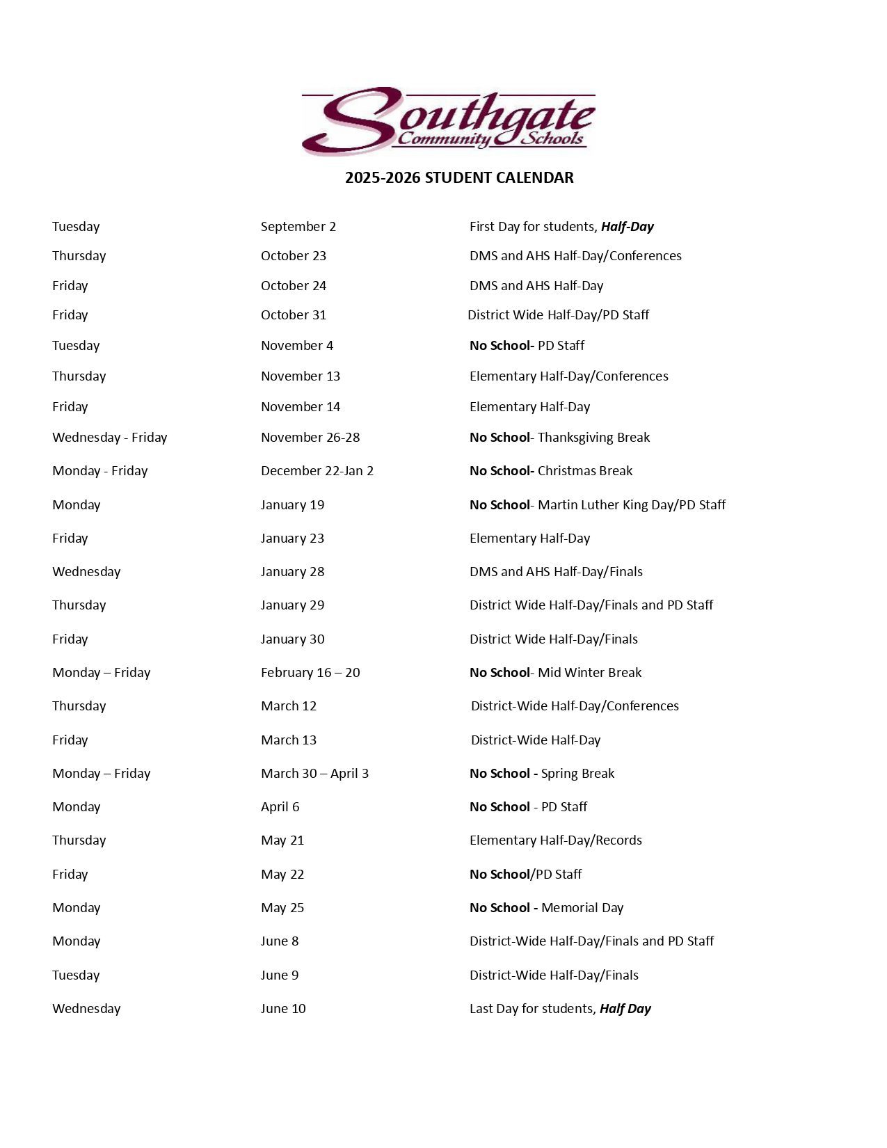 Southgate Community Schools Calendar 2025-2026 FAQs