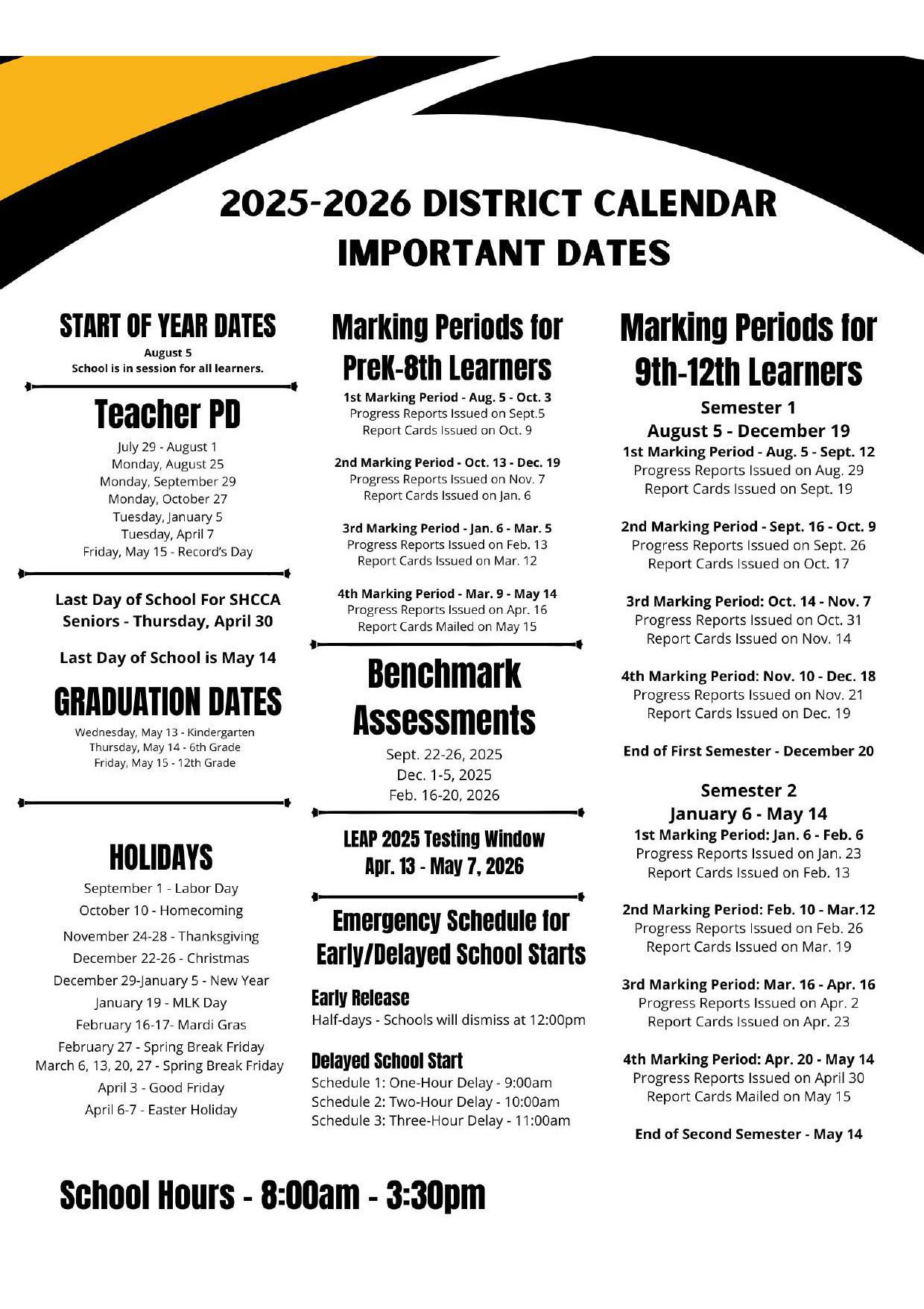 | May 14, 2026 | Last day of school |
