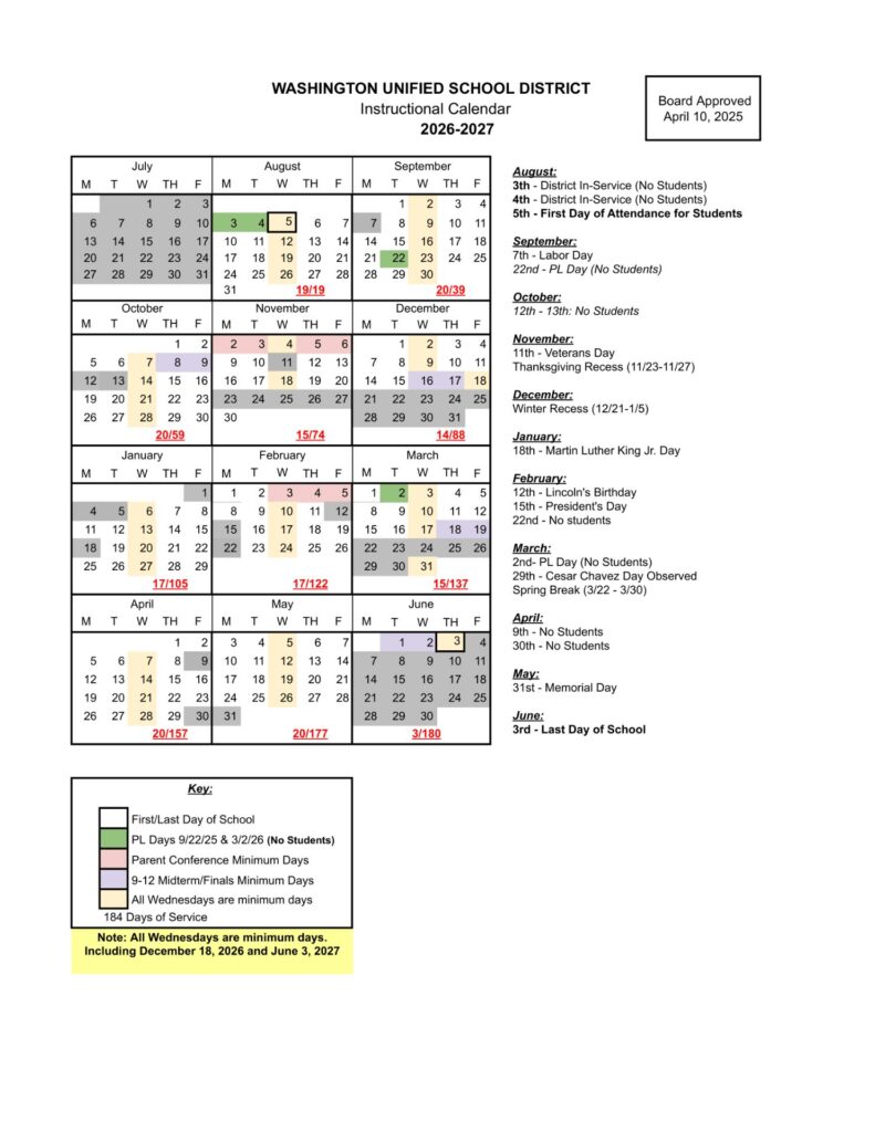 California, School Calendars, StatesKingsburg Elementary Charter School District Calendar 26-27 Revised PDF