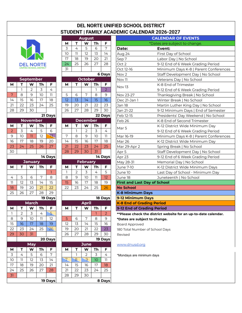 Martinez Unified School District Calendar 26-27 Revised PDF