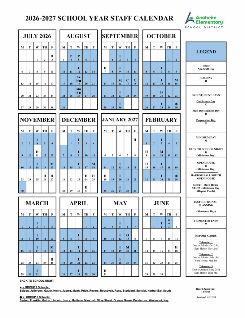 Anaheim Elementary School District Calendar 26-27 Revised [PDF]