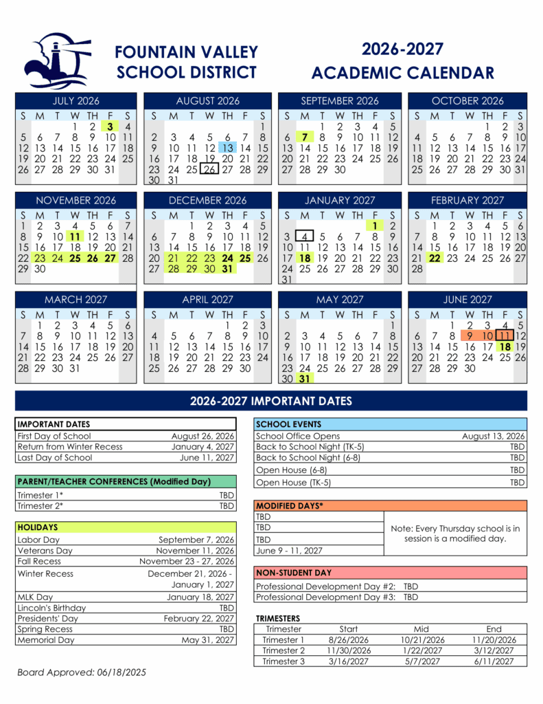 Fountain Valley School District Calendar 26-27 Revised [PDF]