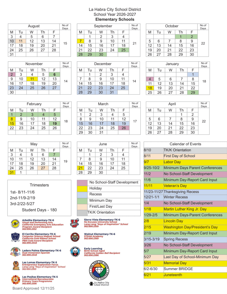 La Habra City School District Calendar 26-27 Revised [PDF]