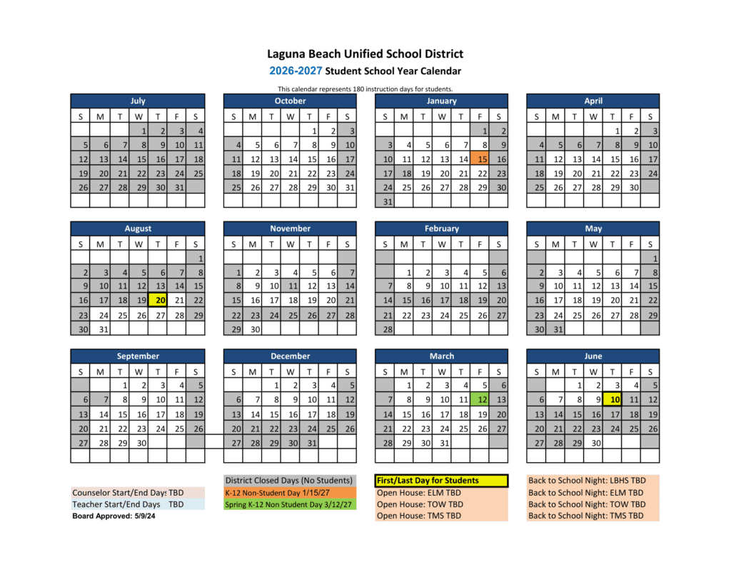 Irvine Unified School District IUSD Calendar 26-27 Revised [PDF]