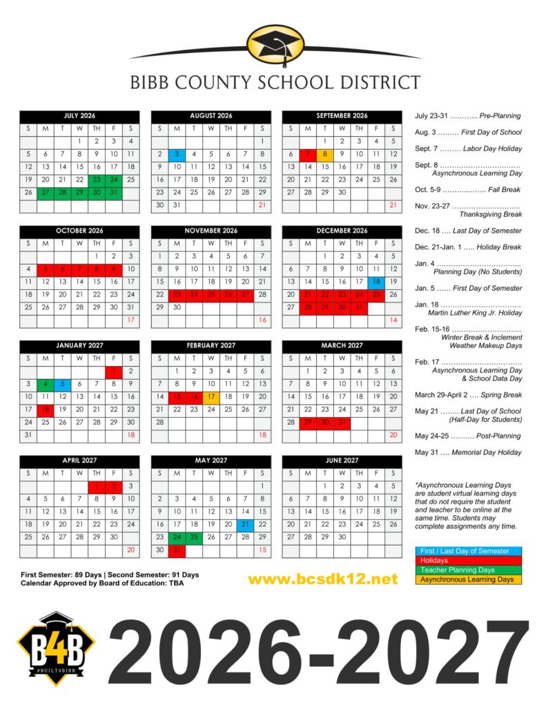 Bibb County School District GA Calendar 26-27 Calendar Revised