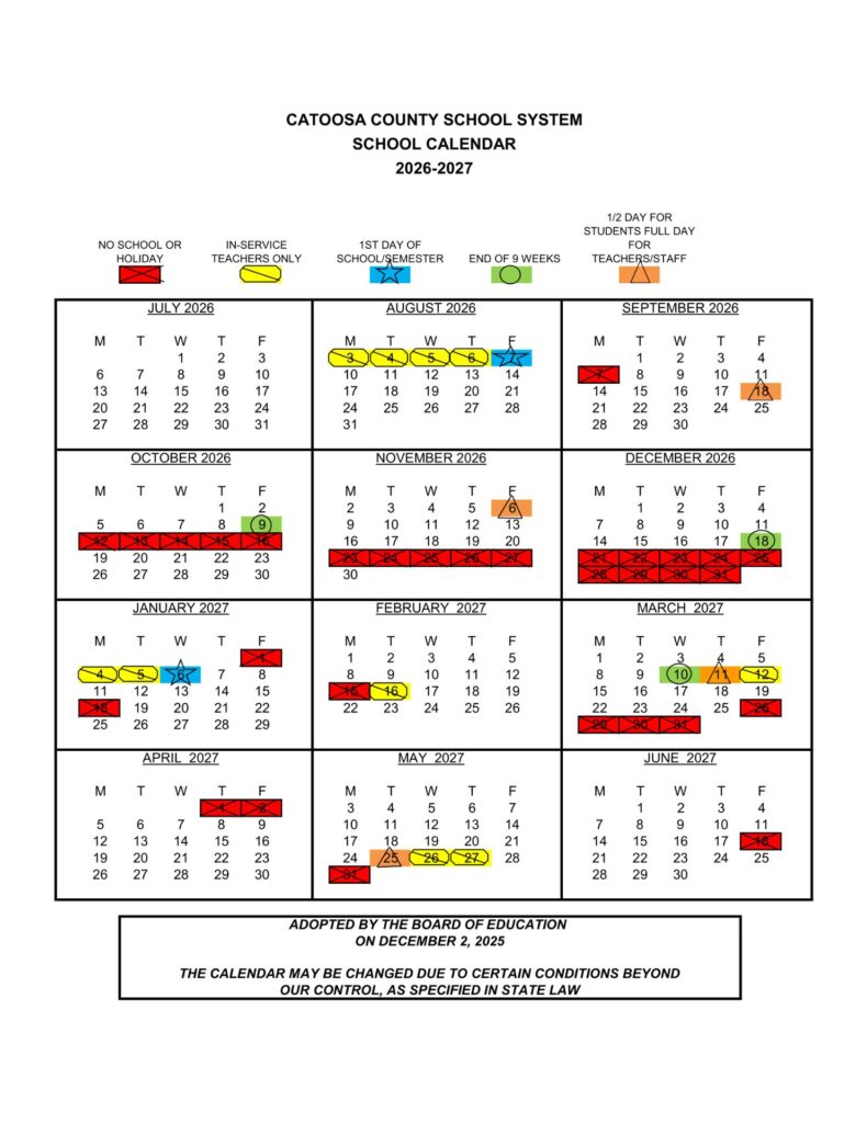 Catoosa County School System GA Calendar 26-27 Calendar Revised