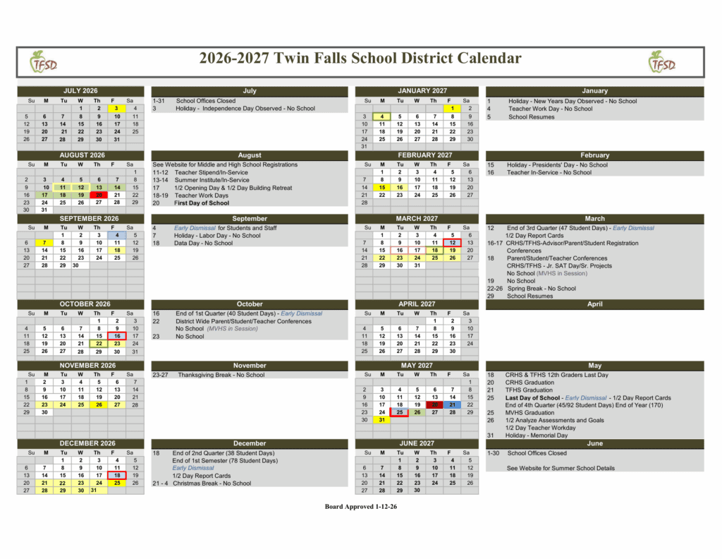 Twin Falls School District 26-27 Calendar [PDF]