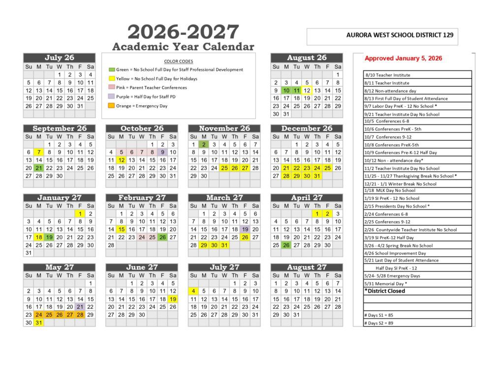 WEST AURORA SCHOOL DISTRICT SD129 Calendar 26-27 [PDF]