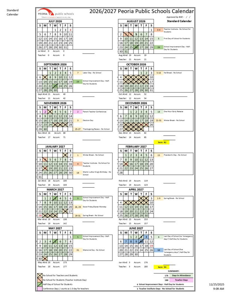 PEORIA public schools district 150 Calendar 26-27 [PDF]