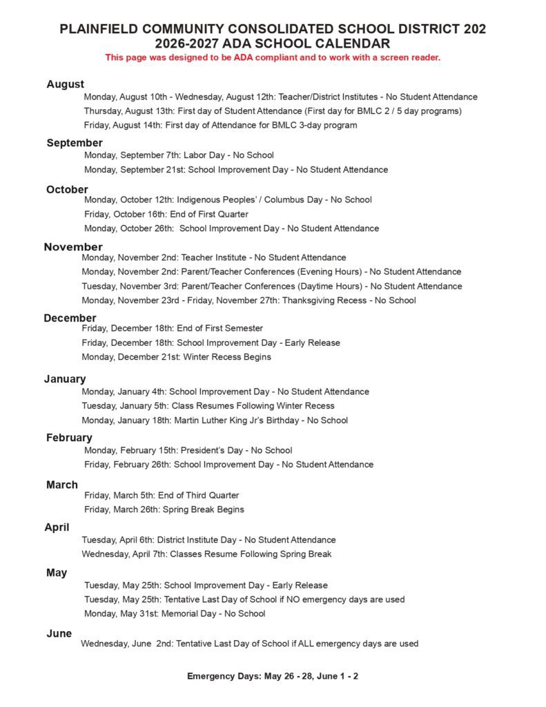 Indian Prairie IPSD District 204 Calendar 26-27 [PDF]