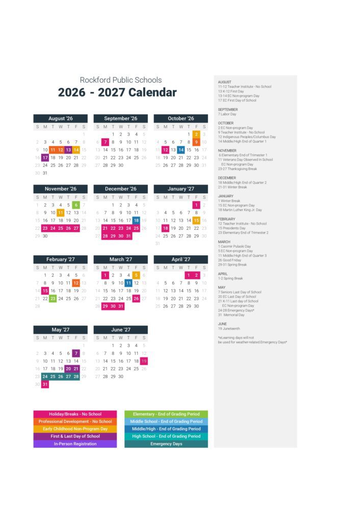 Rockford Public Schools RPS Calendar 26-27 [PDF]